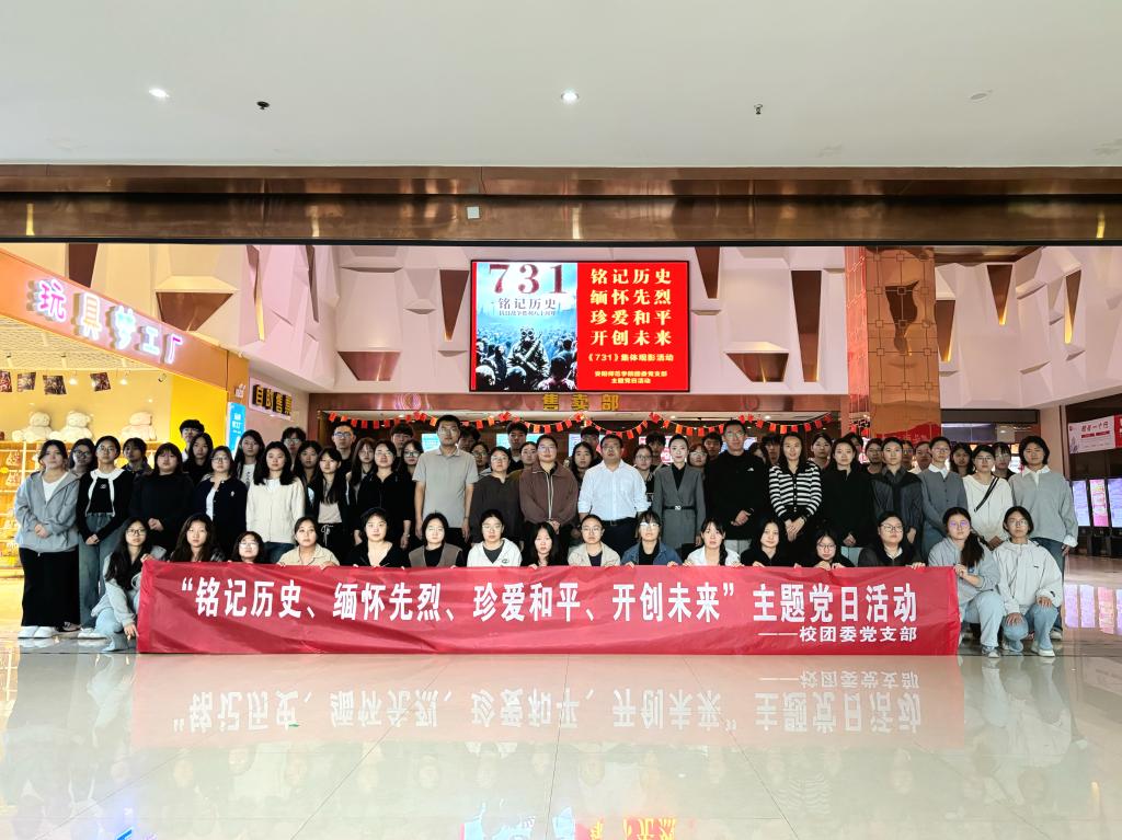 9月27日,校团委党支部组织全体党员开展了“铭记历史、缅怀先烈、珍爱和平、开创未来”主题党日活动,集体观看爱国主义教育电影《731》。