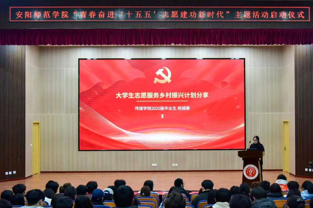会上,校团委相关负责人宣读了“青春奋进‘十五五’志愿建功新时代”主题活动方案。“风铃草”志愿服务队志愿者张云鹤分享了自己参与志愿服务活动的经历和收获,传媒学院2025年乡村振兴计划志愿者杨铖娜分享了在乡村振兴岗位上从“发挥专长”到“青春担当”的志愿故事与使命践行,第五届中国青年志愿服务项目大赛银奖获奖项目“温暖春芽”三待儿童助梦服务社进行了交流和展示。