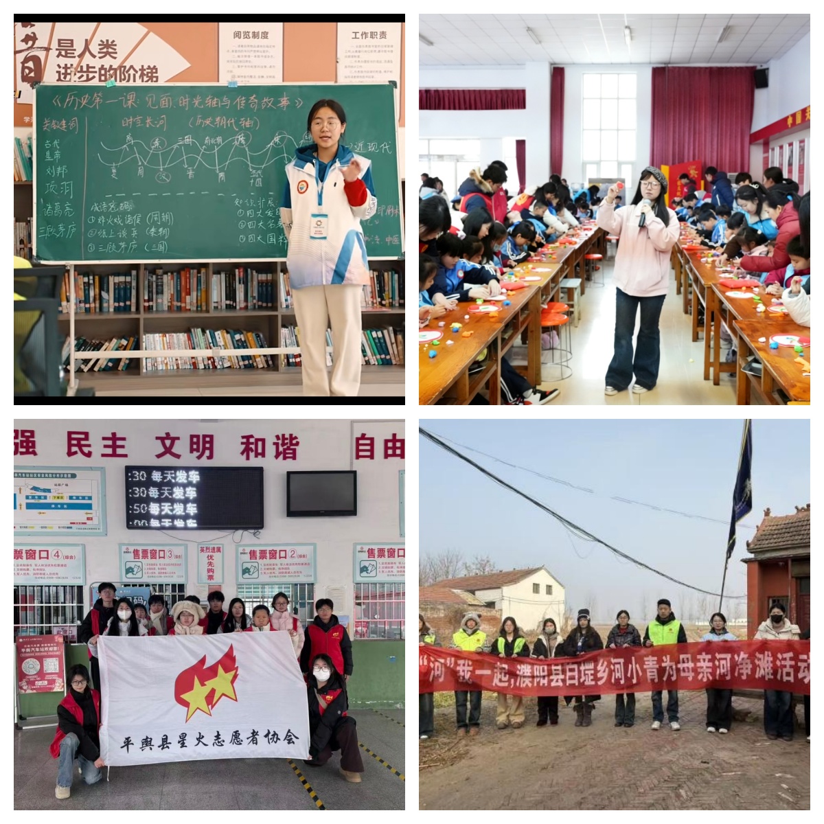 安师青年积极响应党的号召,聚焦“一老一小”等重点群体,用点滴行动传递温暖与关怀。历史与文博学院杨欣彤参加郑州市航空港区“共青团·伙伴计划”,创新设计趣味历史课程,以优异的表现获得“共青团·伙伴计划”优秀志愿者;数学与统计学院赵思甜在春节期间走进村庄看望慰问孤寡老人并帮助老人张贴春联,传递新春暖意;建筑工程学院樊李雅萱作为中国周刊青少年中心的志愿者,参与了河北省多项青少年成长公益活动,在秩序维护与镜头记录中为青少年成长助力。软件学院韩明烨深入田间地头,协助专业人员对机井进行拉网式排查,为粮食稳产丰收贡献青春力量;物理与电气工程学院李晓佳积极参与濮阳县白堽乡“河小青”为母亲河净河滩行动,清理沿河垃圾、排查危险水域隐患,在寒冷冬日用实际行动守护家乡生态安全;传媒学院郭子怡加入平舆县星火志愿者协会,在家乡车站为归乡人递上一杯热茶、送上一个暖宝宝,用微小的善举,汇聚成文明实践最温暖的注脚。正如杨欣彤所讲:“一次耐心的陪伴、一场生动的科普,不仅为家乡孩童带去了快乐,更让志愿精神在青年心中生根发芽。”