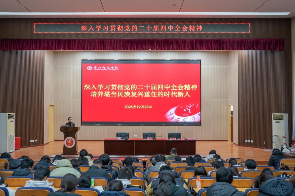 为深入学习宣传贯彻党的二十届四中全会精神,12月23日,我校青年讲师团成员秦晋、肖春雅及周子岚应邀在逸夫楼报告厅为历史与文博学院、计算机与信息工程学院、体育学院青年学生进行宣讲。历史与文博学院辅导员李春辉主持会议,体育学院分团委副书记高培尚参加会议。