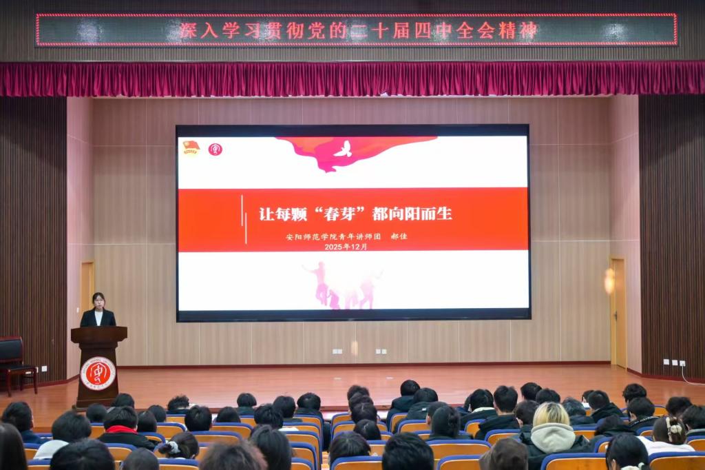 为深入学习贯彻党的二十届四中全会精神,引导青年学子在中国式现代化建设中挺膺担当,12月25日下午,青年讲师团成员李泽浩、郝佳在逸夫楼报告厅为化学化工学院、物理与电气工程学院及建筑工程学院青年学生进行党的二十届四中全会精神主题宣讲。